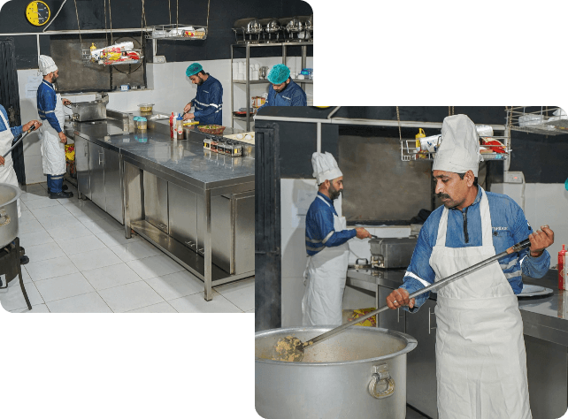 At Nextbridge, employees receive meals that are prepared with strict health standards. In order to maintain food quality, the FMCG staff follows rigorous protocols. Team members are all fully vaccinated and wear proper uniforms while cooking and serving.